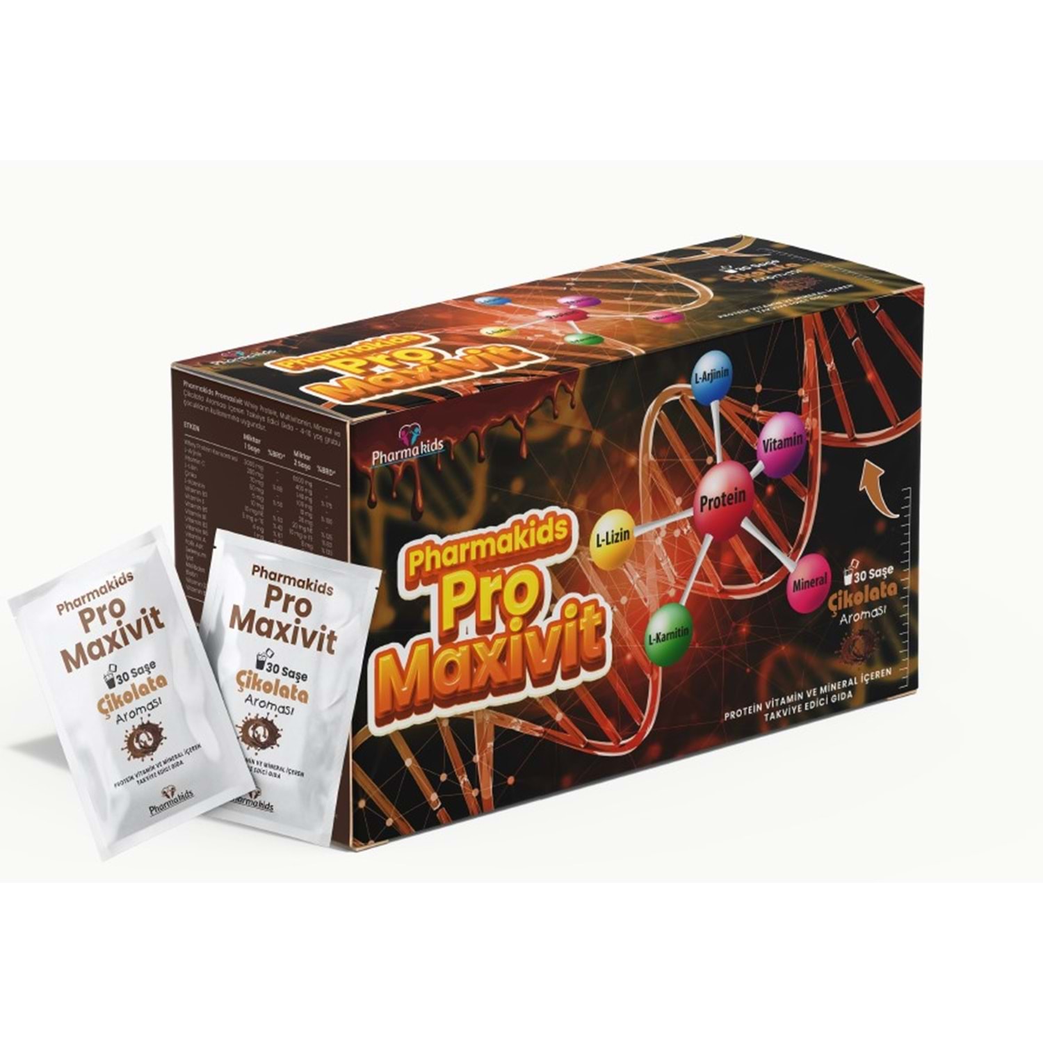 PHARMAKİDS PRO MAXİVİT 30 SAŞE ÇİKOLATALI MULTİ VİTAMİN VE MİNERALLER İÇERİR