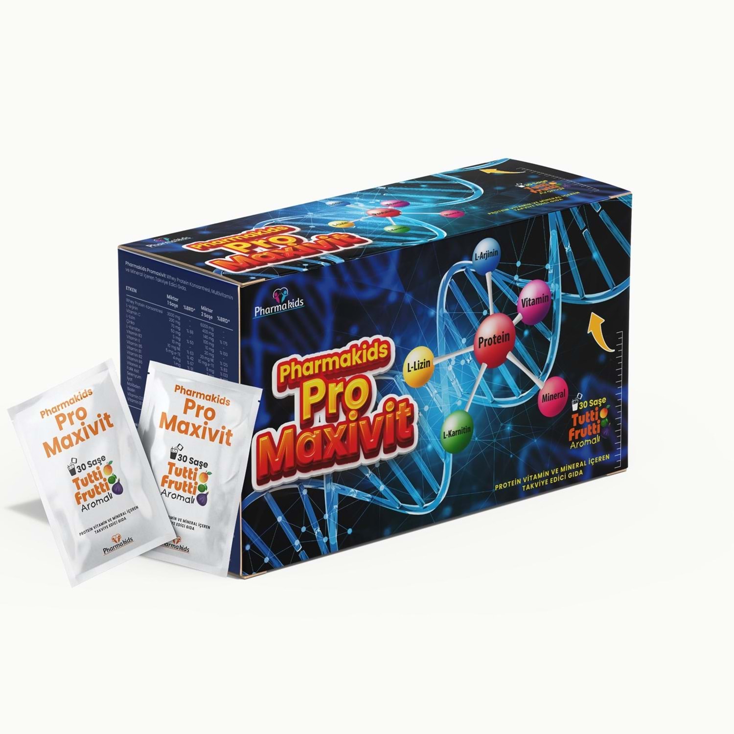 PHARMAKİDS PRO MAXİVİT 30 SAŞE TUTİ FRUTTİ MULTİ VİTAMİN VE MİNERALLER İÇERİR