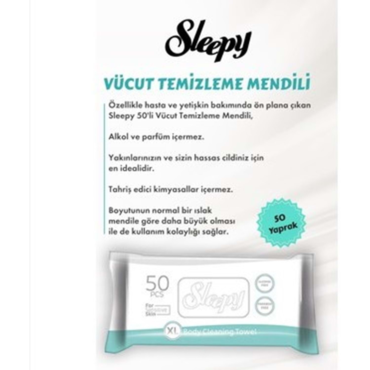 SLEEPY SENSİTİVE VÜCUT TEMİZLEME HAVLUSU 50'Lİ